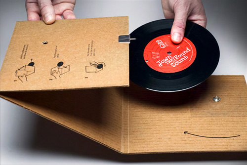 Grey Worldwide in Vancouver created a record player from a piece of corrugated cardboard that folds into an envelope.