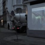 It is an ambient out-of-home concept where grill smoke becomes the “screen” and brand visuals are projected onto it to promote the Angus Burger.