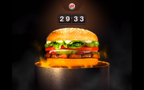 To win, one had to tune in and activate the Whopper Lust challenge…a 5 minute countdown would then start and you would have to watch a perfectly flamed grilled burger spin for 5 minutes. After which you would get a free burger, watch it for another 10 minutes and you would get two, 20 minutes and you get four…it was endless! 🙂