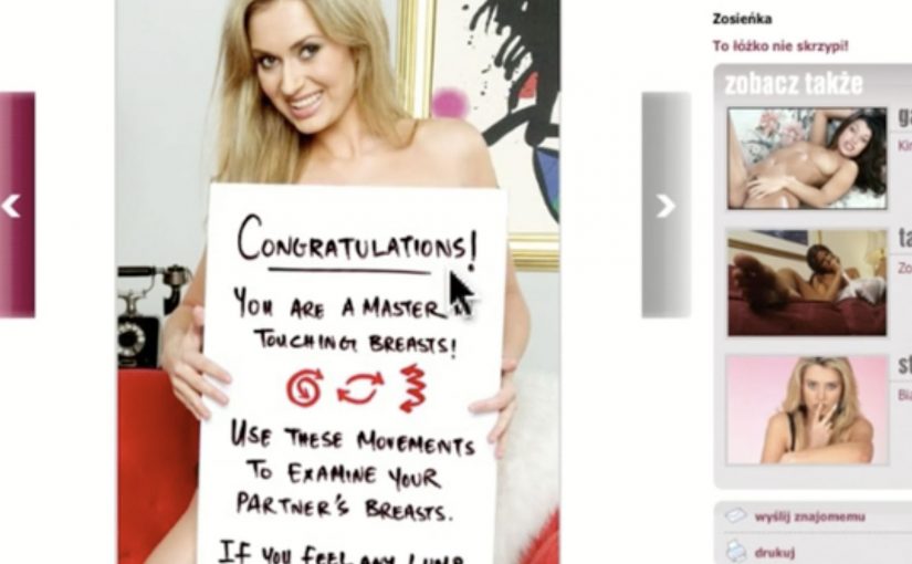 The execution replaces a standard adult-gallery moment with a guided, click-and-touch interaction that demonstrates breast-check technique. It turns curiosity into a short, hands-on tutorial rather than a poster telling you to “be aware”.