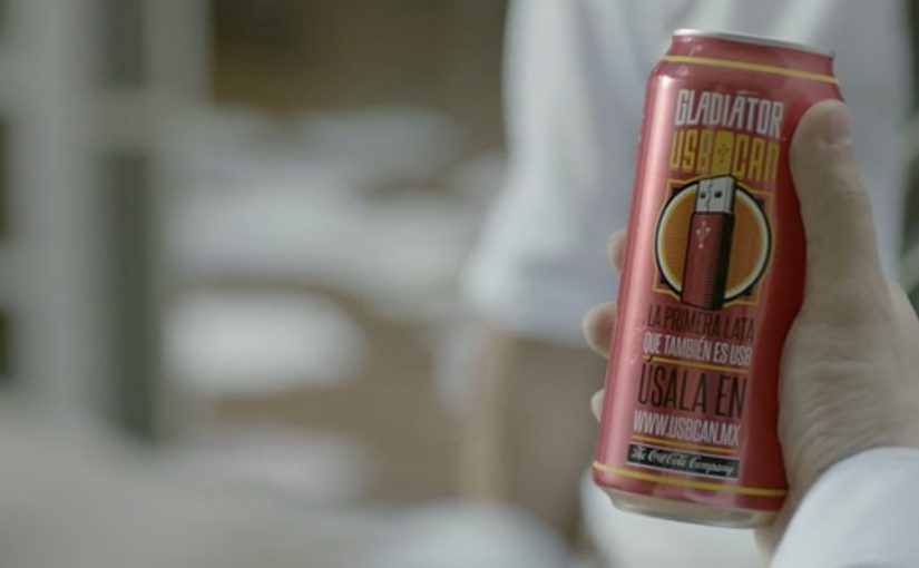 Mexican energy drink Gladiator created a “USB Can” which is not exactly a USB, but it features a packaging innovation that gives users storage when they need it.