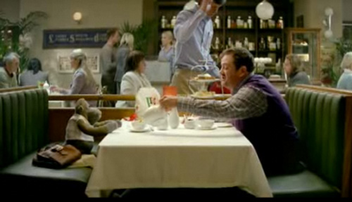 Johnny Vegas and Monkey recreate the famous “fake orgasm” scene from ‘When Harry Met Sally’, in the latest spot for PG Tips teabags.